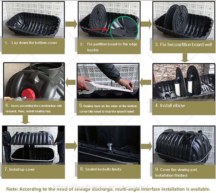 Three-chamber Septic Tanks are widely used for domestic sewage treatment projects, residential communities, office buildings, hotels, schools, hospitals, barracks, public toilets, drainage treatment of food processing enterprises, residential buildings and other places or domestic sewage treatment…Underground Used Septic PP Plastic Material Household Biogas Septic Tank For Sewage Treatment