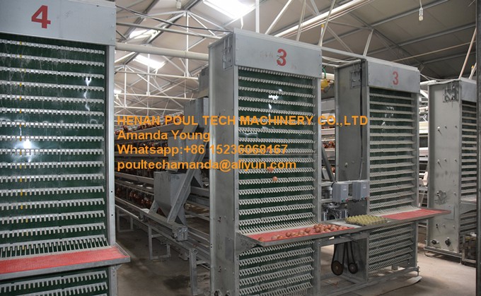 ● It is made up by egg collection machines,egg collection belts(made in Italy) and egg belt hooks.the machines can be from 2 tier to 8 tier. A frame cages also can be equipped with egg conveyor system which can deliver all eggs from different houses to egg storage room.