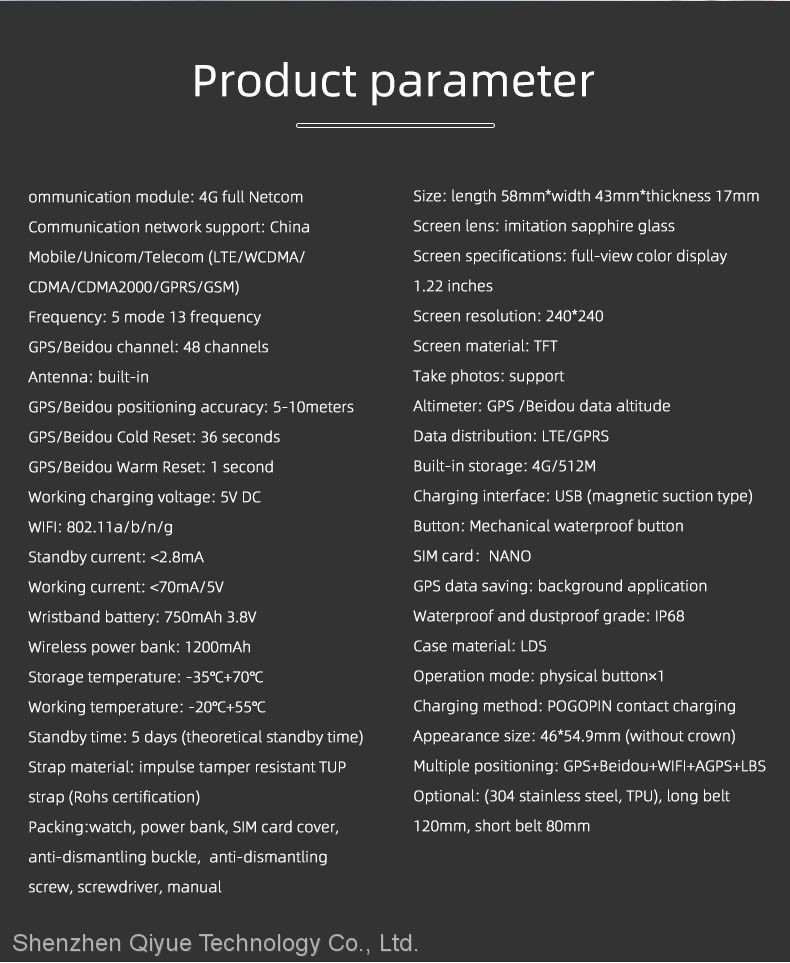 4G GPS Anti-disassembly tracking watch (GPS tracking device for prisoners)Combining Beidou/GPS positioning and 4G full Netcom network, it has common features such as real-time positioning and data transmission, physical tampewristband, health management, instant messaging, SOS emergency help, etc., and also has strap disconnection alarm, cross-border alarm, etc. Vigilance function.