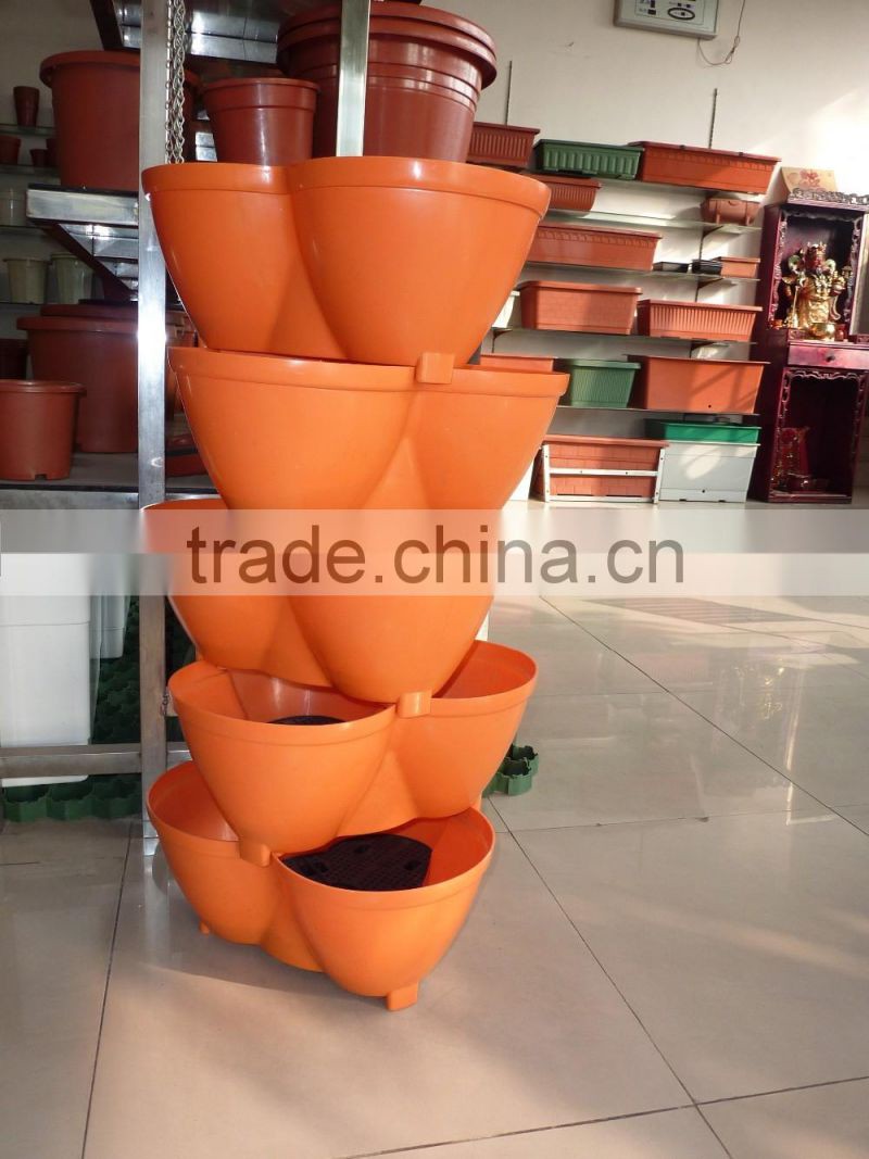 Simply add combinations of flowers or herbs in these stacking planters for dramatic, towering display—utilizing vertical space on terraces, balconies, patios or porches.