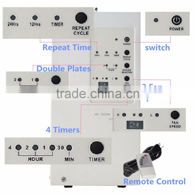 The A7K is designed to powerfully shock treat a room suffering from mold, mildew, and strong smoke/odor damage. The unit includes a remote control to efficiently set up 30 mins, 1 hour, 2 hour and 4 hour settings, and most importantly, this unit had a REPEAT timer !
