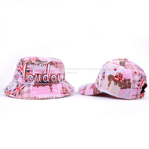 100% Cotton Promotional Flat Crown Embroidered Fashion Bucket Hat