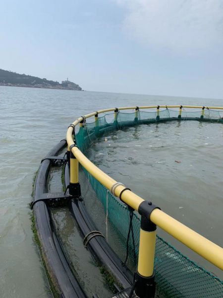 There are two kinds of fish world cage, square and round, mainly black blue stripe PE pipe. The pipe fittings are orange and black, which have a sharp contrast with the water surface, and the visual appearance is beautiful and atmospheric.