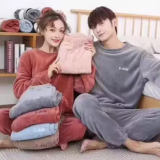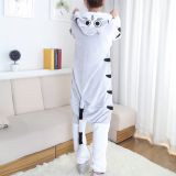 Chi's Sweet Cat Cartoon Flannel Conjoined Polyester Couple Pajamas