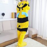 Bee Cartoon Flannel Conjoined Children Polyester Pajamas