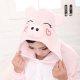 Pig Cartoon Flannel Conjoined Polyester Pajamas
