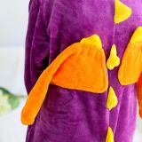 Purple Dinosaur Cartoon Flannel Conjoined Polyester Children Pajamas