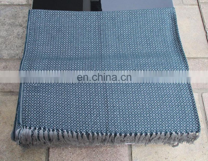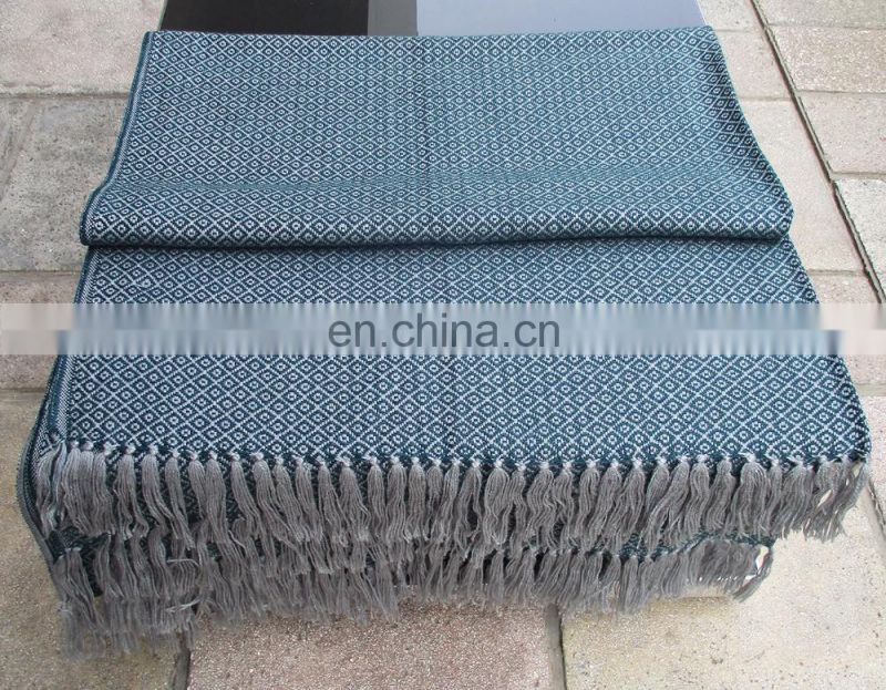 Green with gray color alpaca wool and acrylic blanket with fringes, excellent quality and great softness. You can mix colors in your order.