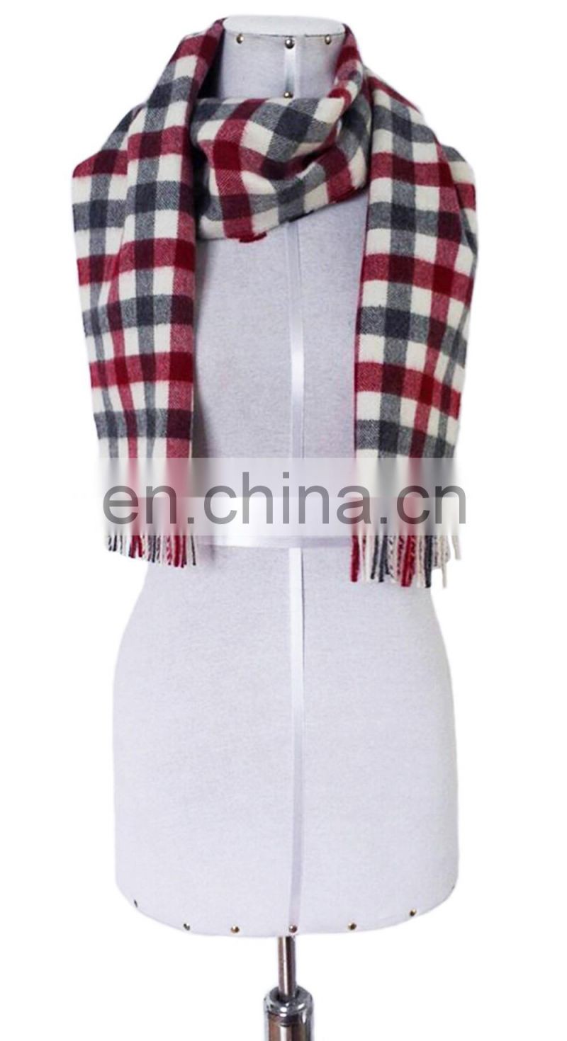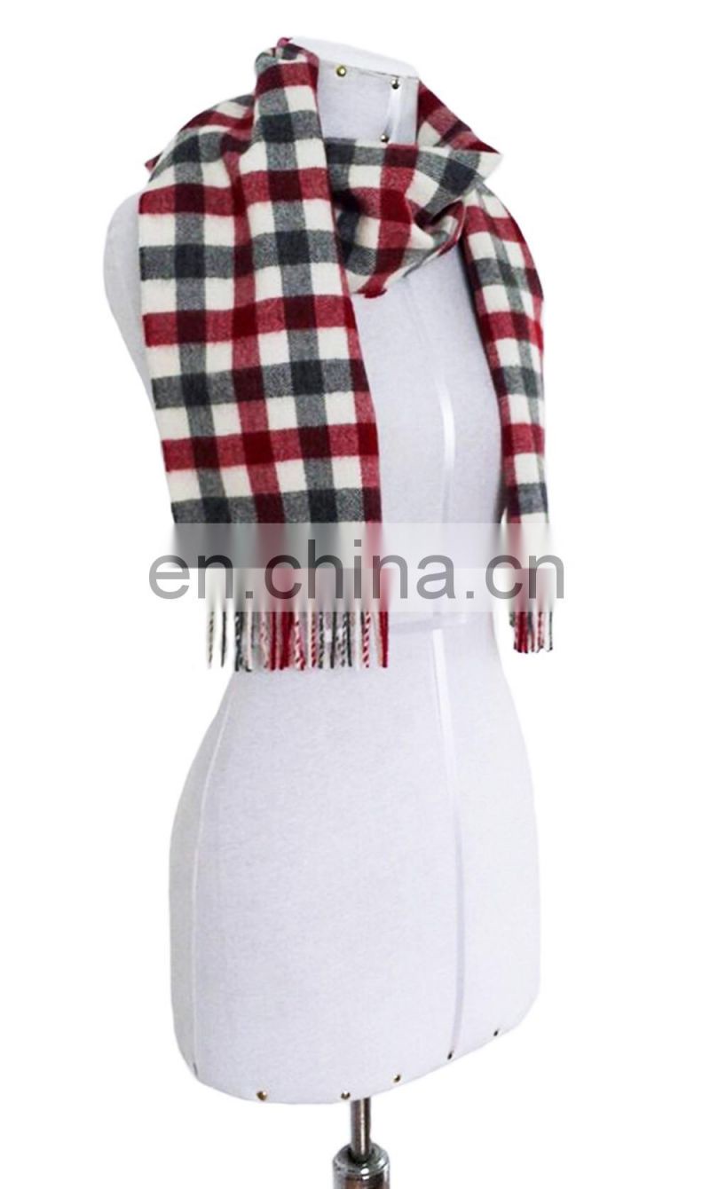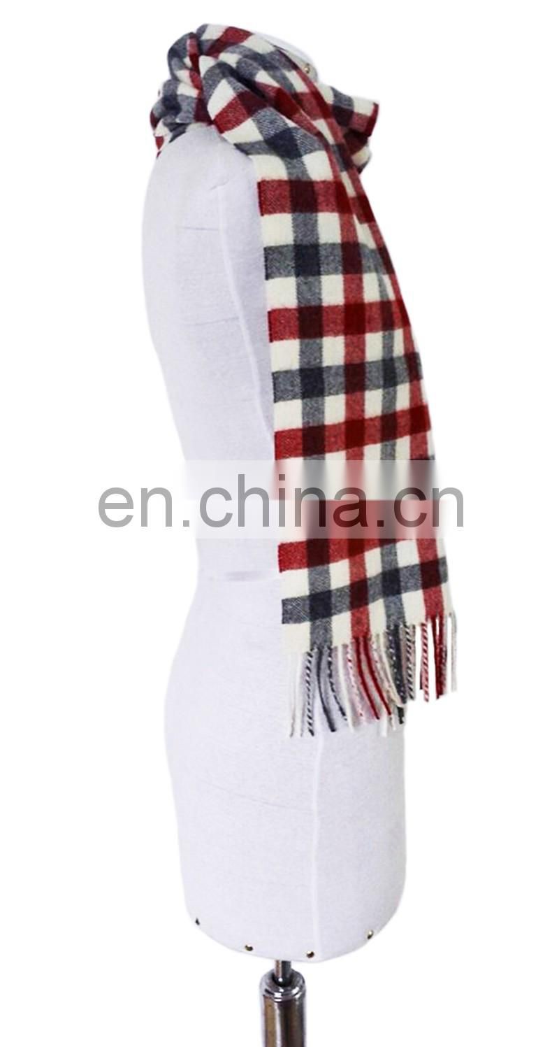 Baby Alpaca Pashmina Scarf of Red with White Little Squares