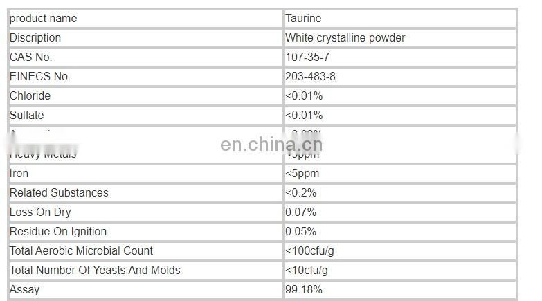 China Factory Raw Material Taurine Without Anti-Caking for Beverages