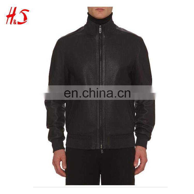 Turtleneck Windbreaker Black two-side Leather Jacket with Perforation and bags
