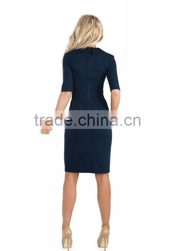 Dark Blue Pencil Dress ,Peter Pan Collar Dress with Pockets.