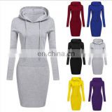 Hooded Hoodie Dress For Women Autumn Winter Fleece Solid Hoodies With Pockets Women's Sweatshirt Dresses Casual Vestidos