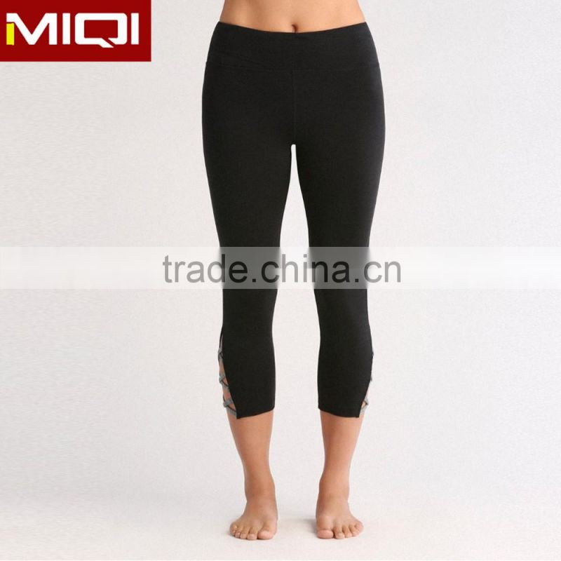 Unique Design Four Needles Six Threads Custom Womens Yoga Capri Leggings With Criss Cross On Knee