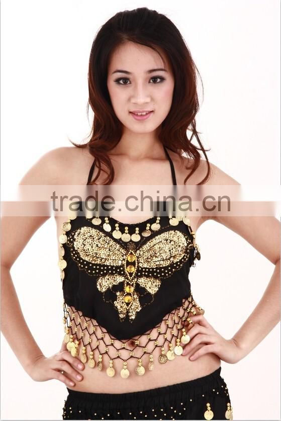 Butterfly pattern sequin sexy halter top with coin AF0071