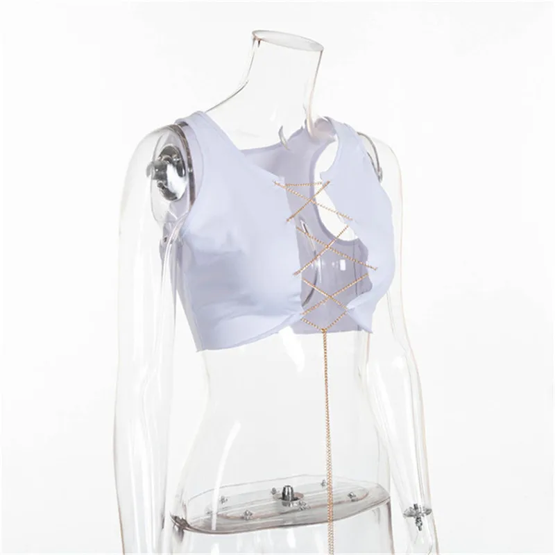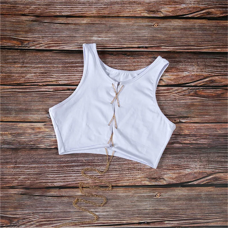 Cheap nice Women Ladies Sexy Sleeveless Low-cut Vest Metal Chain Crop Tops Hot Night Club Wear