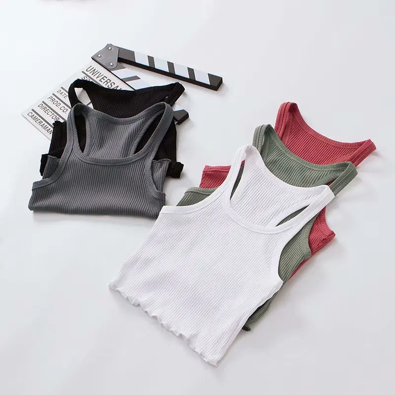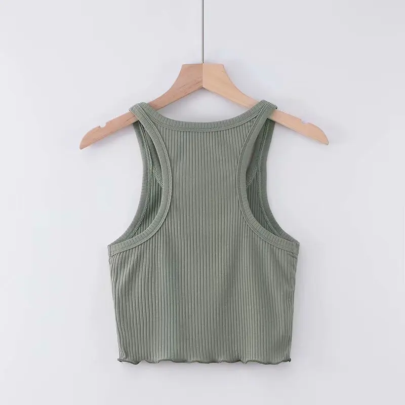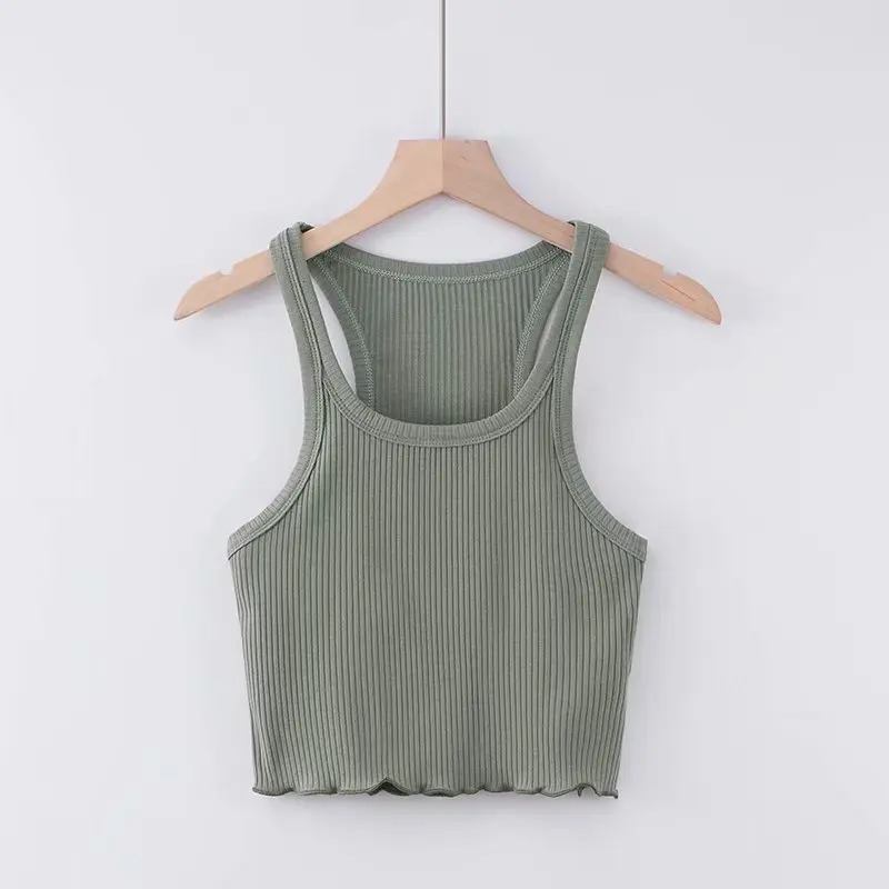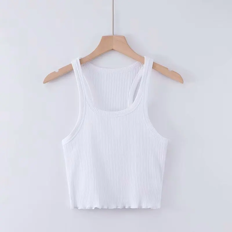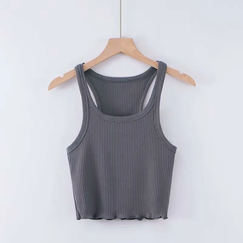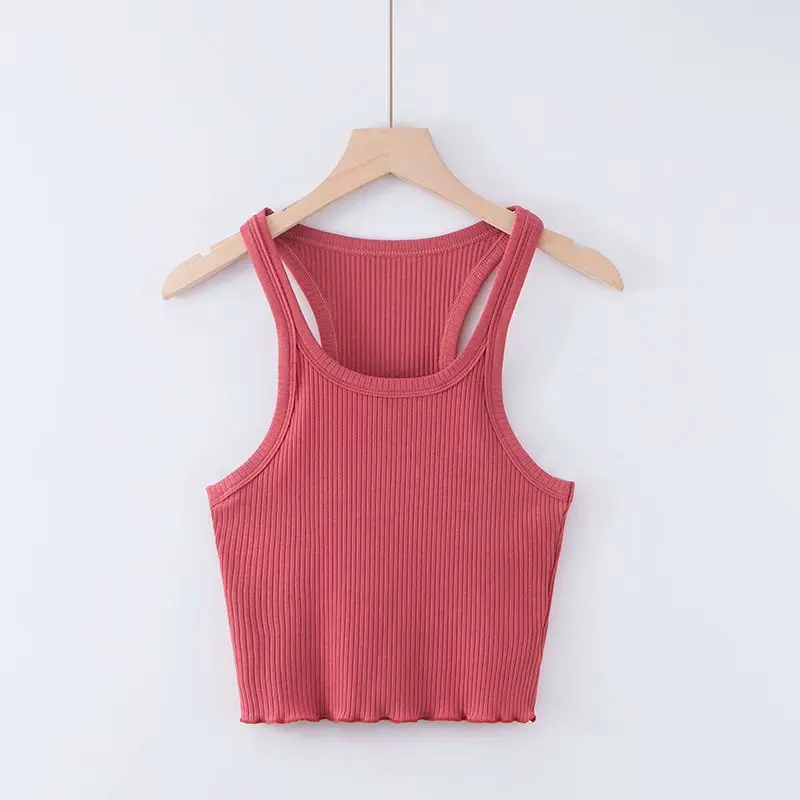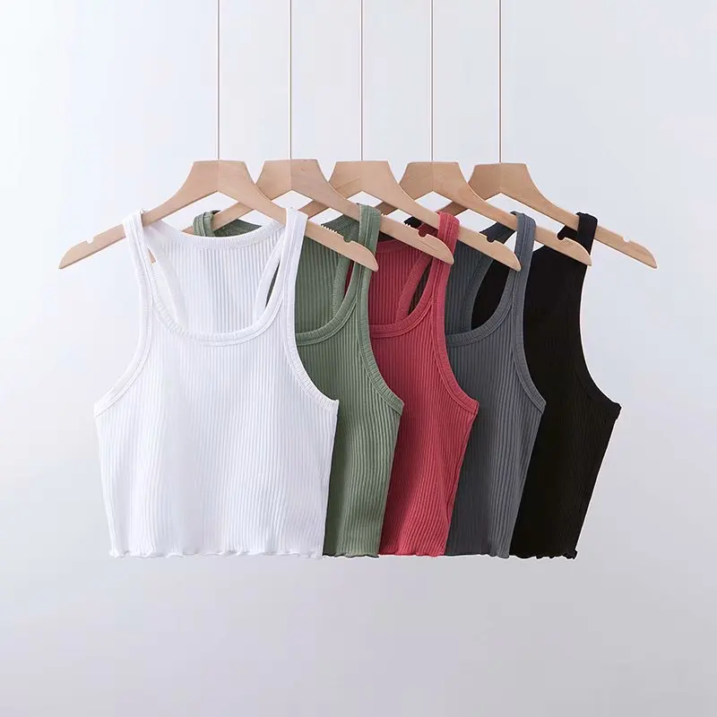 Wholesale Ladies blank rib merrow edge sexy women's summer U neck basic cotton crop top