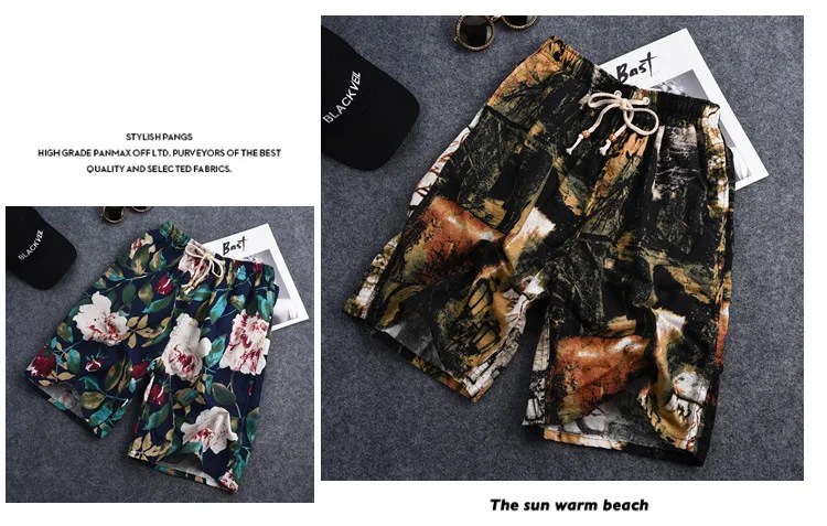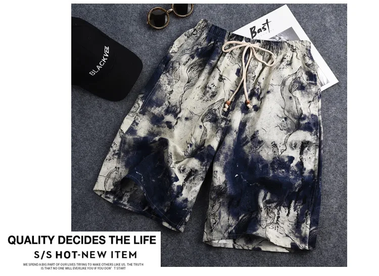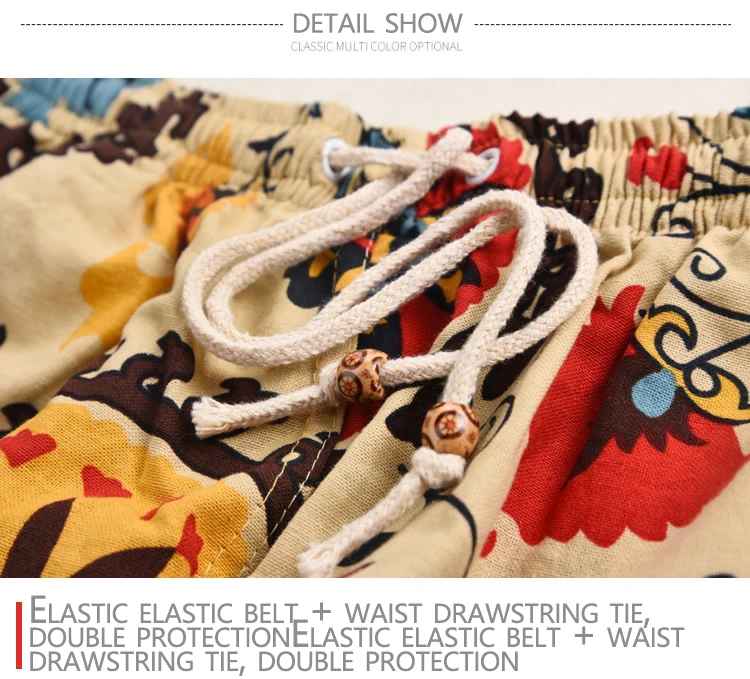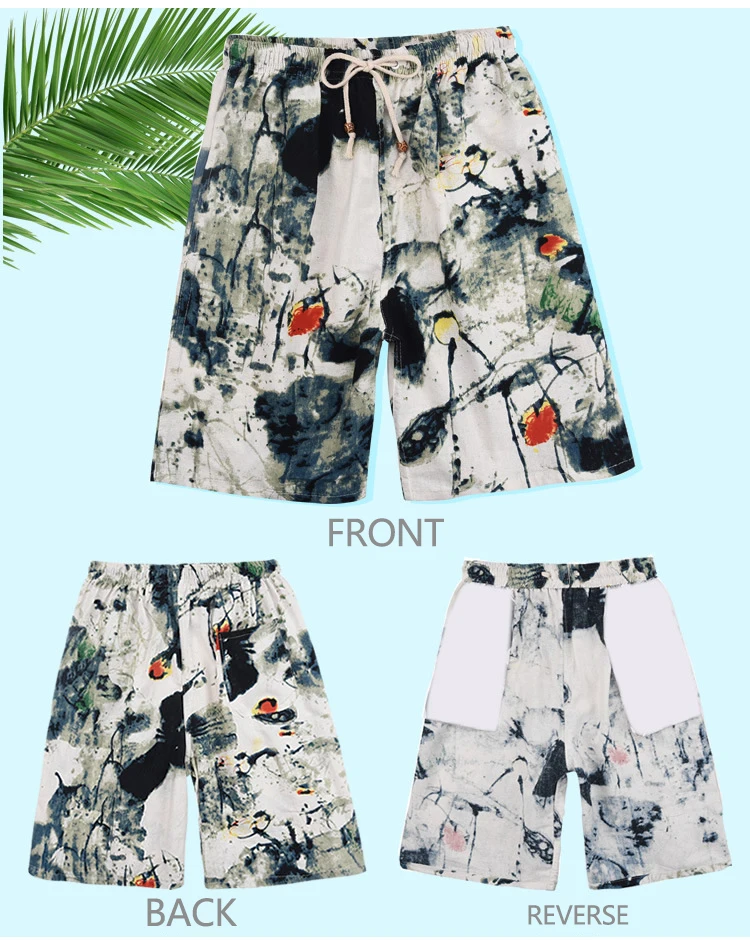 Summer Cotton and Linen Printed Pants Casual Sports Loose Large Size Quick-drying Shorts Thin Men's Beach Pants