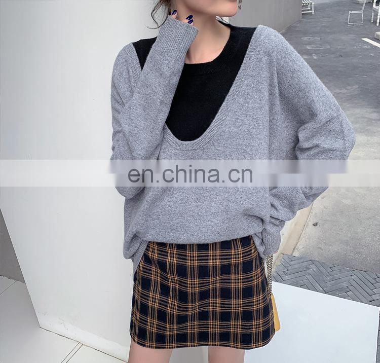 Women Fashion Plus Size Big V Neck Pullover Tank Top Vest Cashmere Twinset